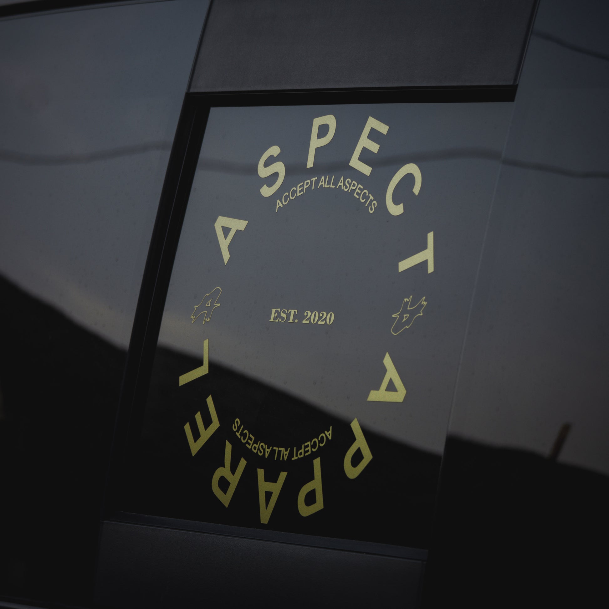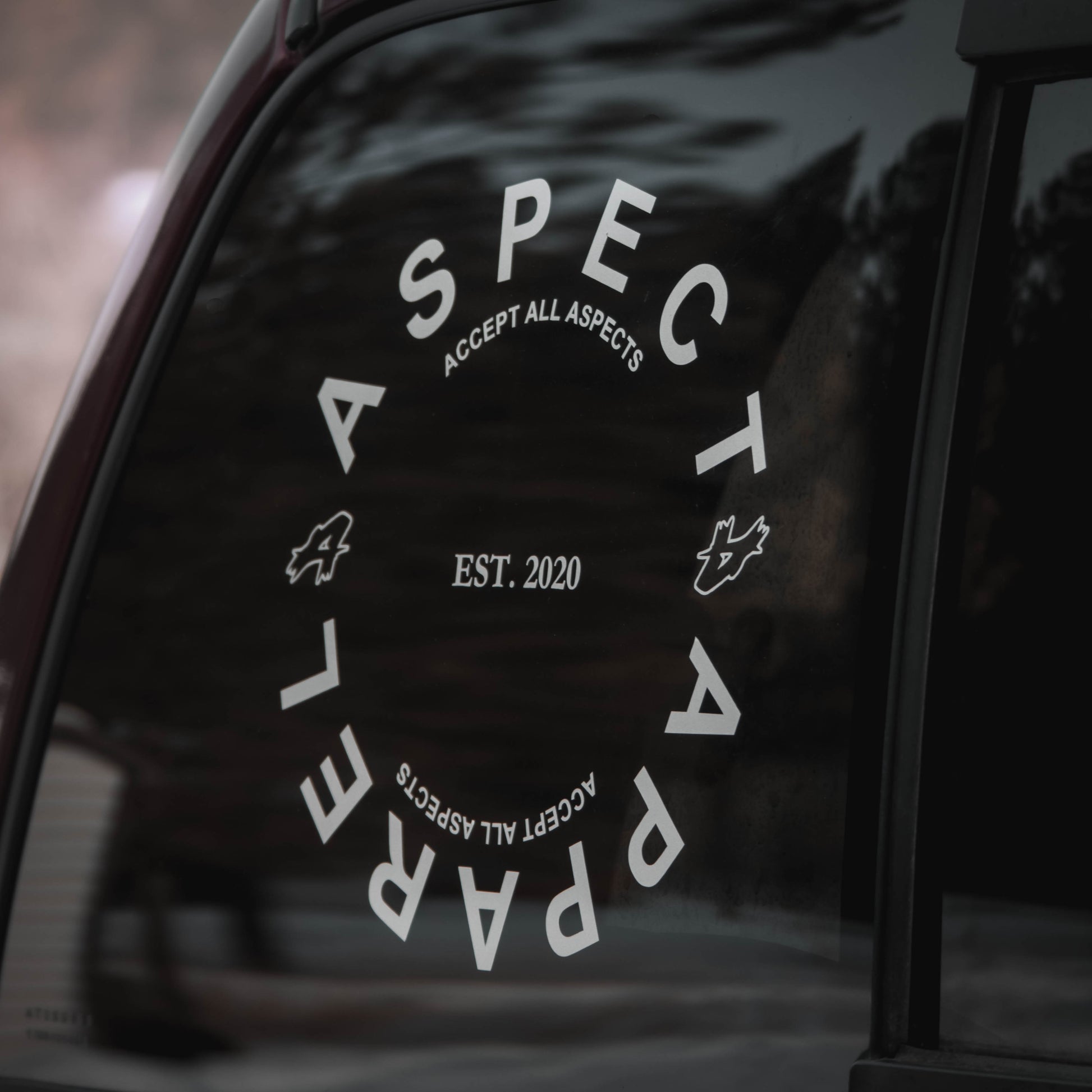 Interested in our Aspect Apparel Sticker? Size 11" wide and 11" tall. Perfect for the back window of your vehicle!